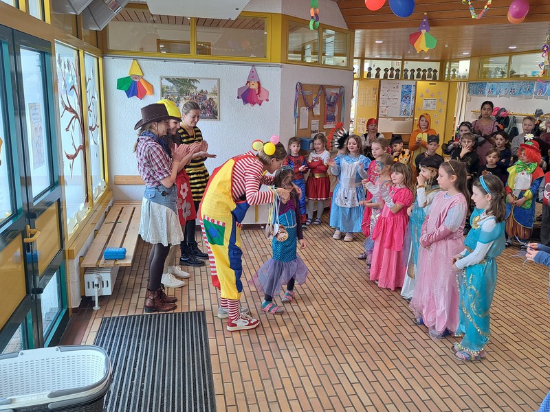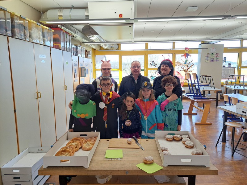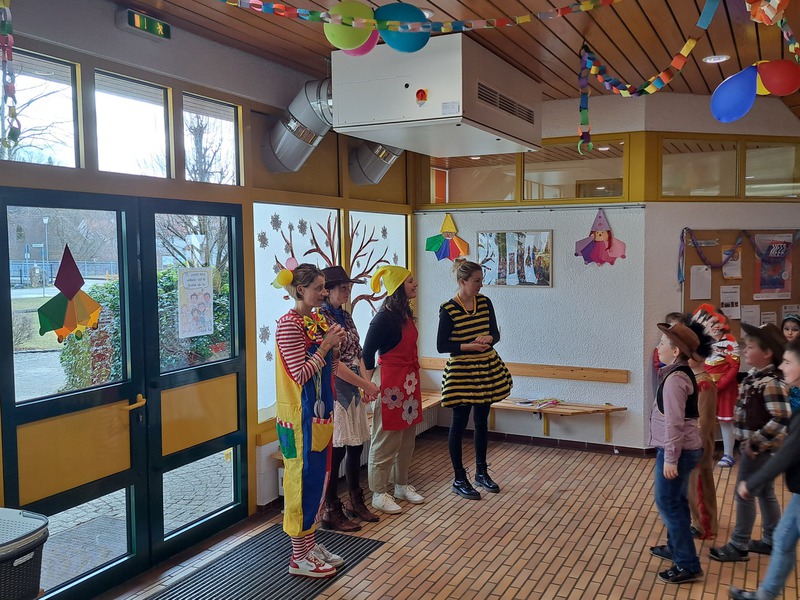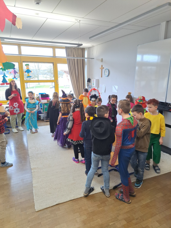 Zunächst begann der erste Schultag nach den Sommerferien für unsere Schulfamilie mit einem gemeinsamen Gottesdienst in der Pfarrkirche in Münsterhausen, den wir zusammen mit Frau Faulhaber und Herr Pfarrer Moosariet feierten. Danach trafen die neuen Erstklässlerinnen und Erstklässler zusammen mit ihren Eltern bei sonnigem Wetter im Pausenhof ein, um sowohl von der 2.-4. Klasse mit einem Lied und einem Gedicht, als auch von der Schulleitung Frau Mayer begrüßt zu werden. Im Anschluss gingen die ABC-Schützen mit ihrer Klassenlehrerin Frau Helferich in ihr Klassenzimmer, um dort ihre erste Schulstunde zu erleben. Die Eltern warteten in der Zwischenzeit bei einem kleinen Imbiss im Elterncafé in der Turnhalle auf sie. An dieser Stelle sagen wir ein herzliches Dankeschön an den Elternbeirat, der in diesem Schuljahr wieder die Bewirtung übernahm!