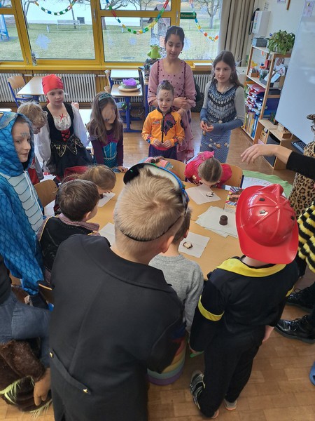 Die Klasse 3a hatte am 13. November die Chance, den Wald in Begleitung einer Försterin hautnah zu erleben. Im Klassenzimmer hatten die Kinder schon einiges über die Bäume gehört, es war aber trotzdem etwas ganz Besonderes, diese mit allen Sinnen kennenzulernen. Durch die spielerische Herangehensweise an die Pflanzen und Tiere des Waldes und besondere Anschauungsstücke, wie beispielsweise einem Wildschweinfell, waren die Schüler sehr motiviert bei der Sache. Dank des guten Wetters hatten die Kinder am Ende noch Gelegenheit, sich im Wald auszutoben. Anschließend besuchten wir ein Dammwildgehege, bevor wir uns auf den Weg zurück zur Schule machten.